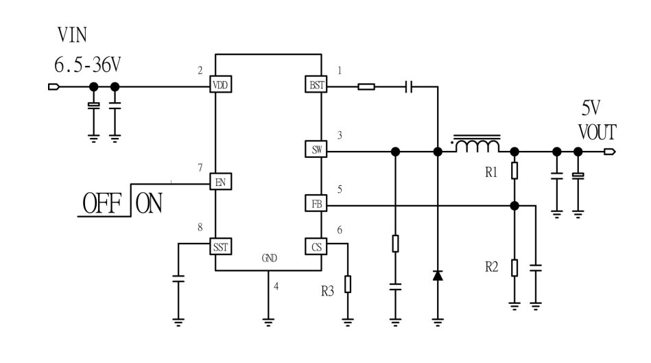 提供 3.1A  连续负载电流输出,,宽输入电压:6.5V-36V。。。