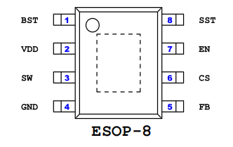 外部软启动时间可调。。。。输入欠压锁定、、、、输出过压保护。。芯片采用 ESOP8封装。。。