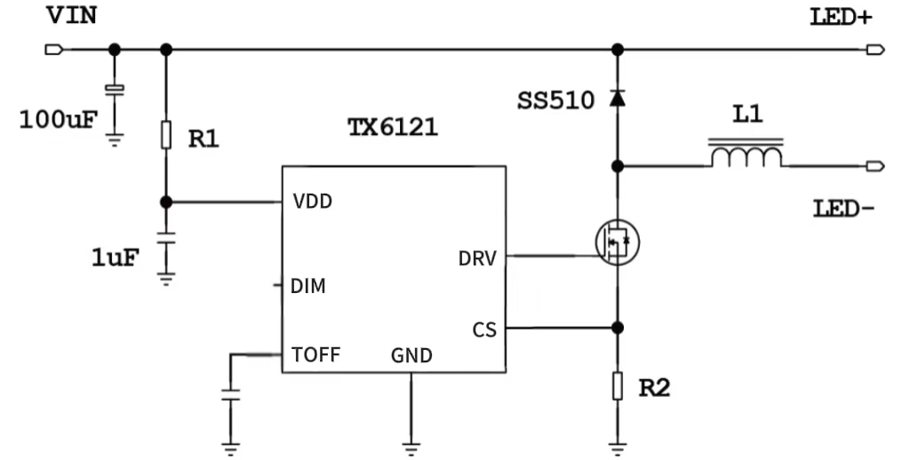 TX6121 是一款大功率开关降压型 LED 恒流驱动芯片