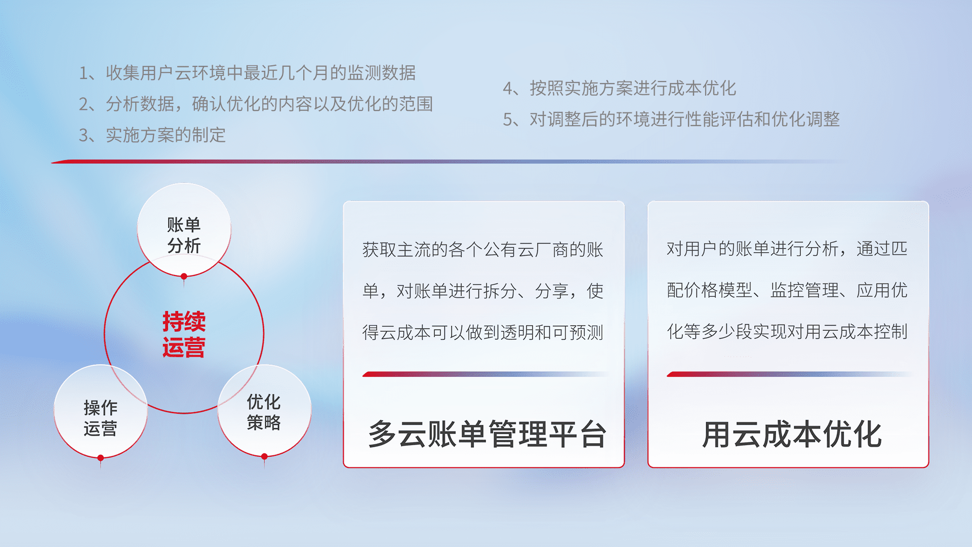 运用智能化工具分析云资源,,提供日常费用可视化工具,,,自动账单拆分,,,成本优化云上费用,,,,降本增效。。