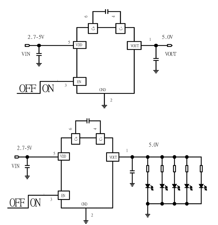外部元件数量少( VIN 和 VOUT 有一个快速电容和两个小旁路电容)使得芯片非常适合电池供电的小型应用。。。